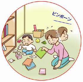 いや、これはホントにそう!「これでもか!」ってぐらいオモチャを広げたままで、絵本を棚から出してきて、さらにちょっと目を離したすきに、冷蔵庫を開け、ティッシュを引き出し……。「これが当然」と思ってなければ、とてもつきあいきれません。それにこんな風にいろんなモノに興味を持つのは、子どもの好奇心が育っている証拠。 だから、むしろ喜んでもいいことなんです(^ ^)って、わかっていても(^ ^;「散らかすのが当然」と口では言っているものの、実際に散らかった部屋を人に見られるのは、やっぱり抵抗があるわけです。お姑さんなんかが突然やってきたりすると、かなりあわてる。