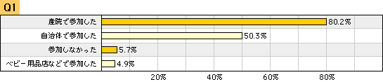 Q1: 母親学級(母親教室)に参加しましたか?(複数可)