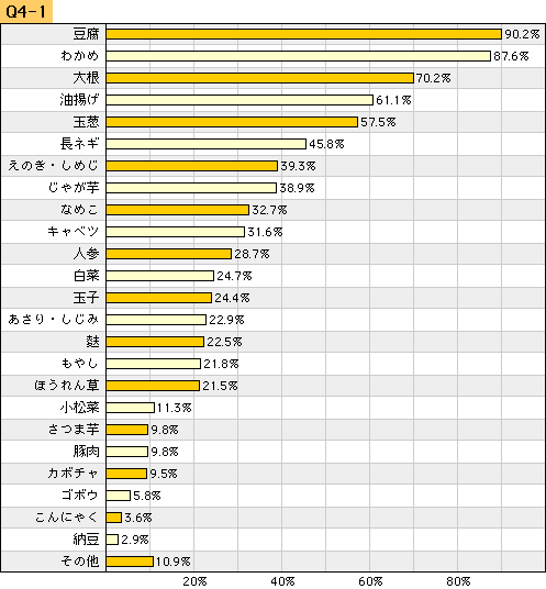Q4-1: 我が家のお味噌汁でよく使う具材は?(複数可)