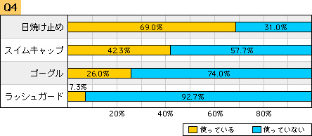 Q4: プールや海で、身に着けている(使っている)ものは?(複数可)