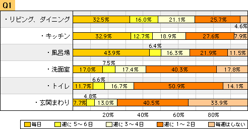 Q1: お掃除をするのは週に何回くらいですか?