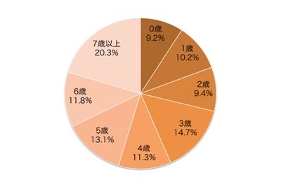 今回のアンケートの対象となるお子さまの年齢は、「7歳以上 (20.3%)」「3歳(14.7%)」「5歳(13.1%)」「6歳(11.8%)」「4歳(11.3%)」「1歳(10.2%)」「2歳(9.4%)」「0歳(9.2%)」の順になりました。