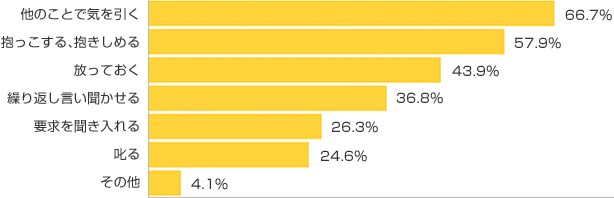「抱っこする、抱きしめる」とママ・パパの愛情や温もりでお子さまを落ち着かせることで対処されている方も。