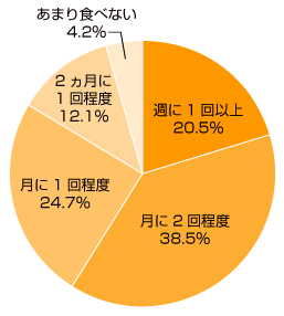 トップは「月に2回」。頻度としては低めな印象を受けますが、カレーはインパクトのある味なので、月2回程度はちょうどいいペースなのかもしれませんね。