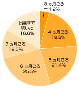妊娠初期から出産まで、おさまった時期はつわりが始まった時期よりばらつきが見られました。