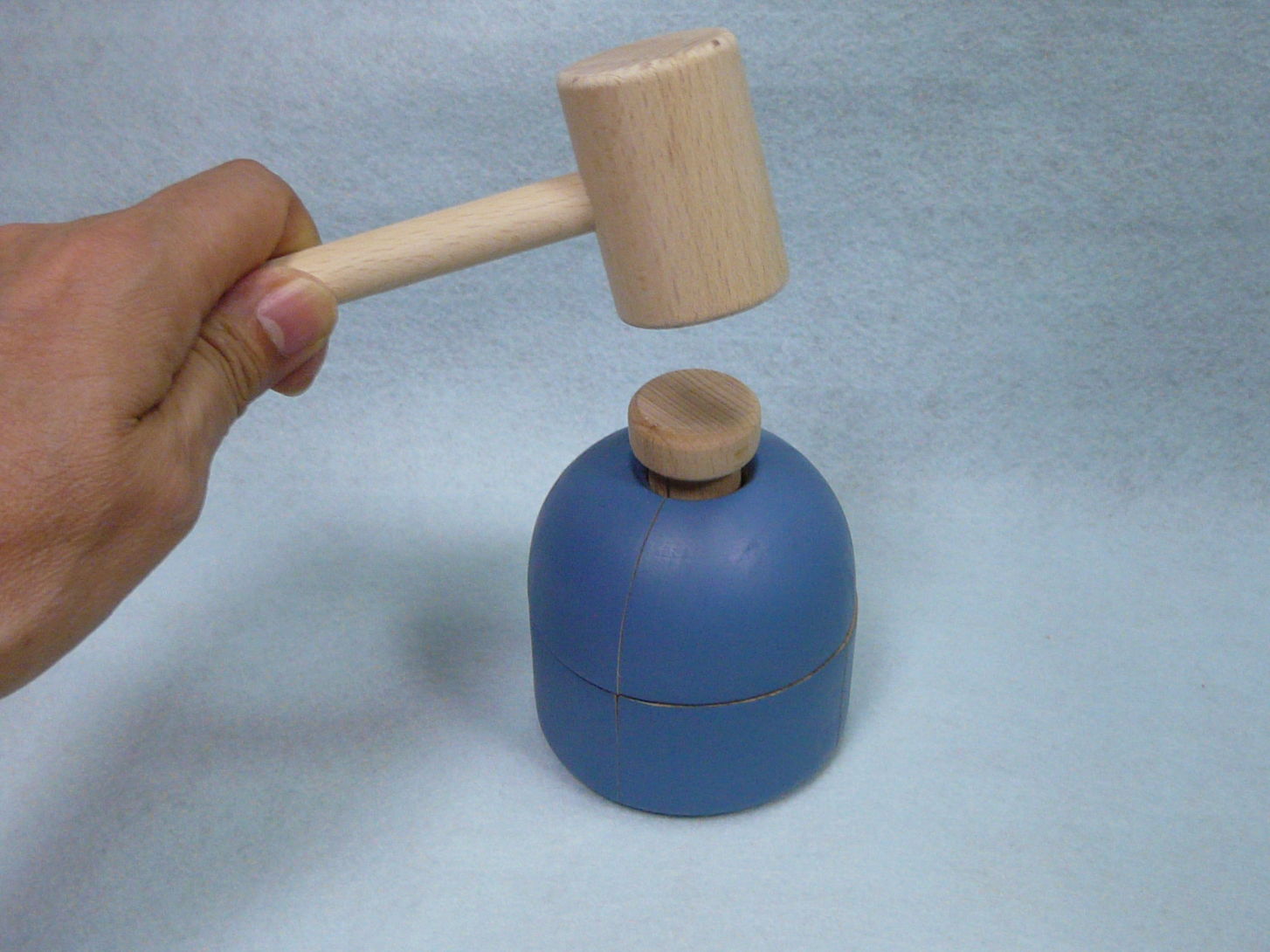 『ぼかん』という言葉の通り、木づちでペグをたたくと8個のパーツが一瞬にしてばらばらになるおもちゃです。遠慮なく叩けるおもちゃって珍しいですよね。シンプルでわかりやすいので赤ちゃんにも大人気。ばらばらになるのが楽しくて笑い出す赤ちゃんもいるんですよ。