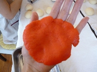 初回の基本の生地のこね方の要領で上記の分量をこねる。ボウルに戻し、ラップをして、35℃のオーブンで30分発酵させる。