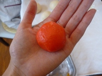 かぼちゃ餡の作り方はかぼちゃをゆでて、300gくらいの実をつぶす。これに、砂糖80g、バター10gをいれ混ぜて、10等分して、冷蔵庫へ。