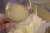 水につけてから長い時間置くとイーストの元気がなくなるので、1分置いたらすぐにボウル大に一気に入れてこね始めます。