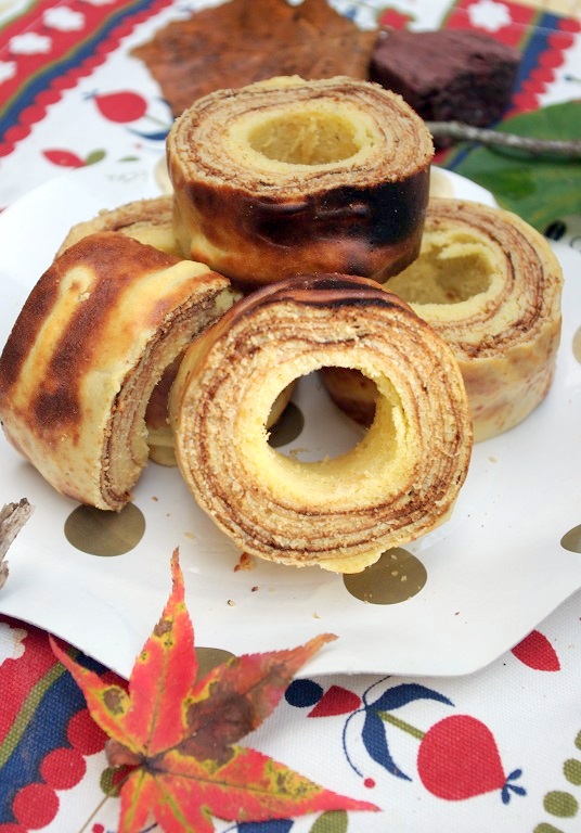 きれいなバウムクーヘンを作るには、火加減がポイント。
