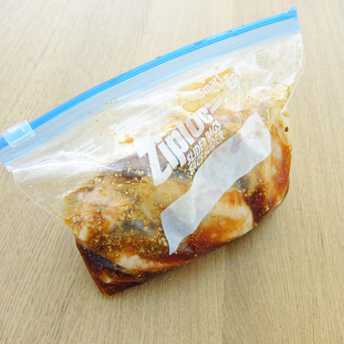 前の晩からつけておいて、当日はジップロックのままバーベキュー会場に持っていけば焼くだけなのでとってもラクですよ♪