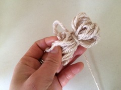 3.毛糸の端を、ほどけないように縛って、出来上がり。