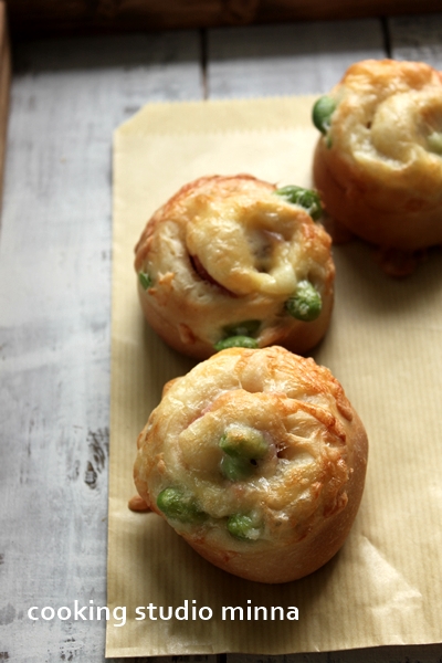 仕上げ発酵後、ピザ用チーズをのせて、180℃に予熱したオーブンで20分焼きます。