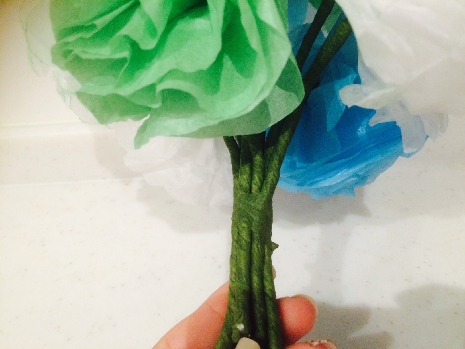 4、ティッシュの上からフローラルテープ、もしくはお好きなマスキングテープを巻きます。