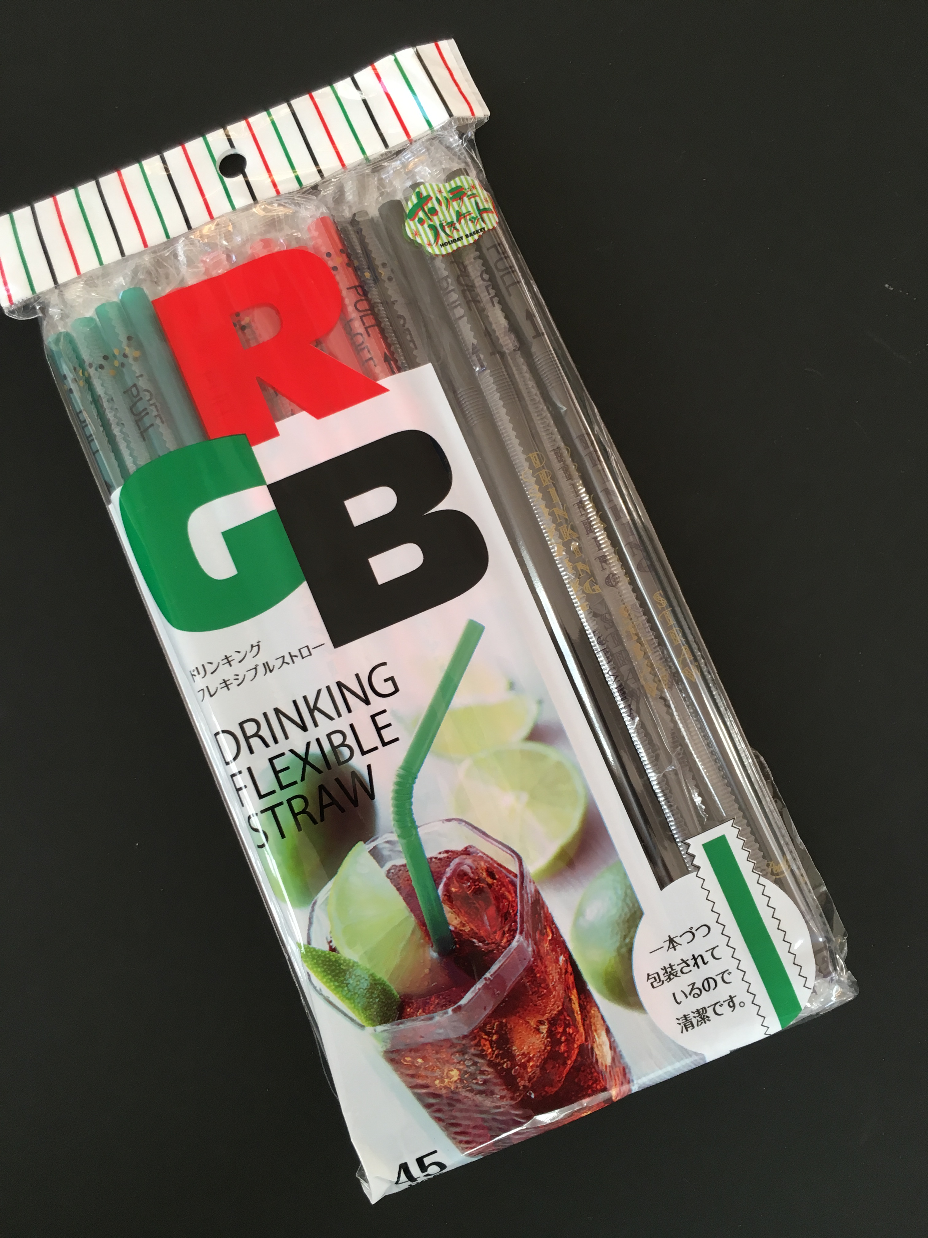 こちらのストローは「赤」「緑」「黒」の3色揃っていますのでクリスマスにはピッタリです。