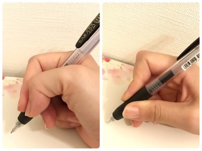 ◆人さし指の第二関節と第三関節の間あたりにペンがくる位置(60度くらい)がちょうど良い角度