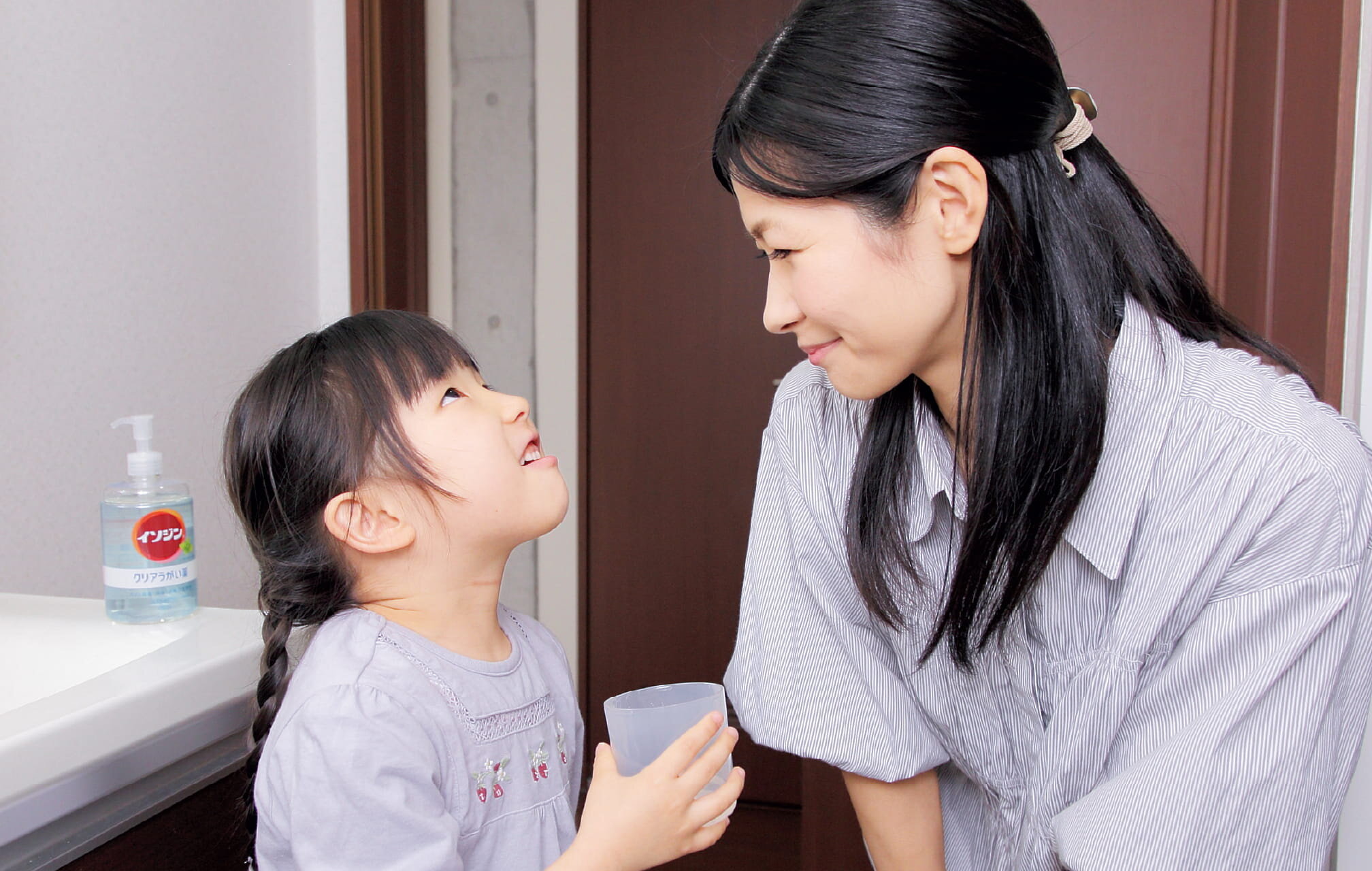 季節の変わり目はのどが乾燥しがちで、ウイルスや細菌が侵入しやすくなります。ママ・パパはもちろんお子さまも、外出帰りや起床時のうがい習慣が大切です。