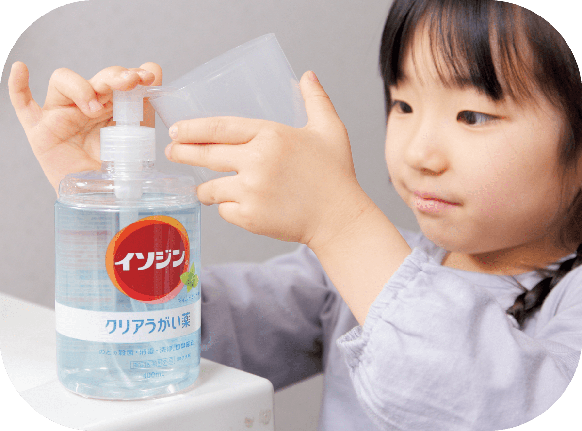 のどのイガイガや体調管理が気になるときにはうがい薬を使って、下で紹介している「正しいうがい」を習慣にして、家族みんなでのどの健康管理を始めましょう。
