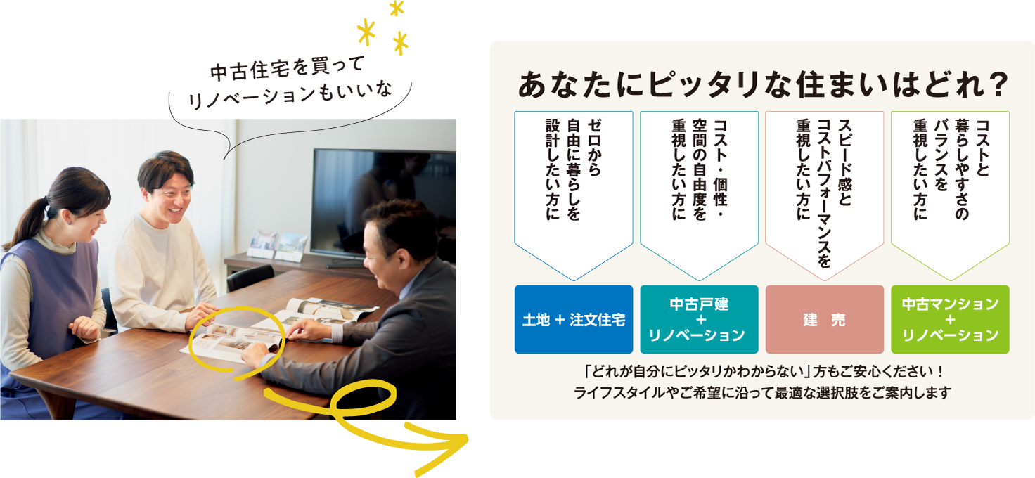 赤ちゃんとの生活は、快適で安全な住まいで始めたい...。そう考えて、産休・育休中に新しい住まいを検討する人が増えています。 ただ、ひと口に住まいと言っても、一戸建て、マンション、さらに新築、リフォームなどと選択肢が多すぎて、どこに相談すればいいのか迷う人も多いようです。