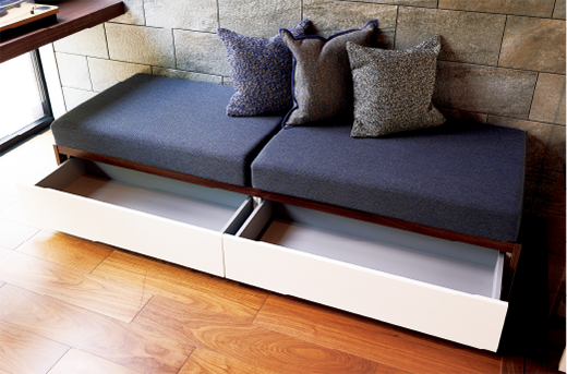 造作ベンチの下を収納にするなど、新築やリフォームで取り入れたいアイデアをじっくり見学できます。