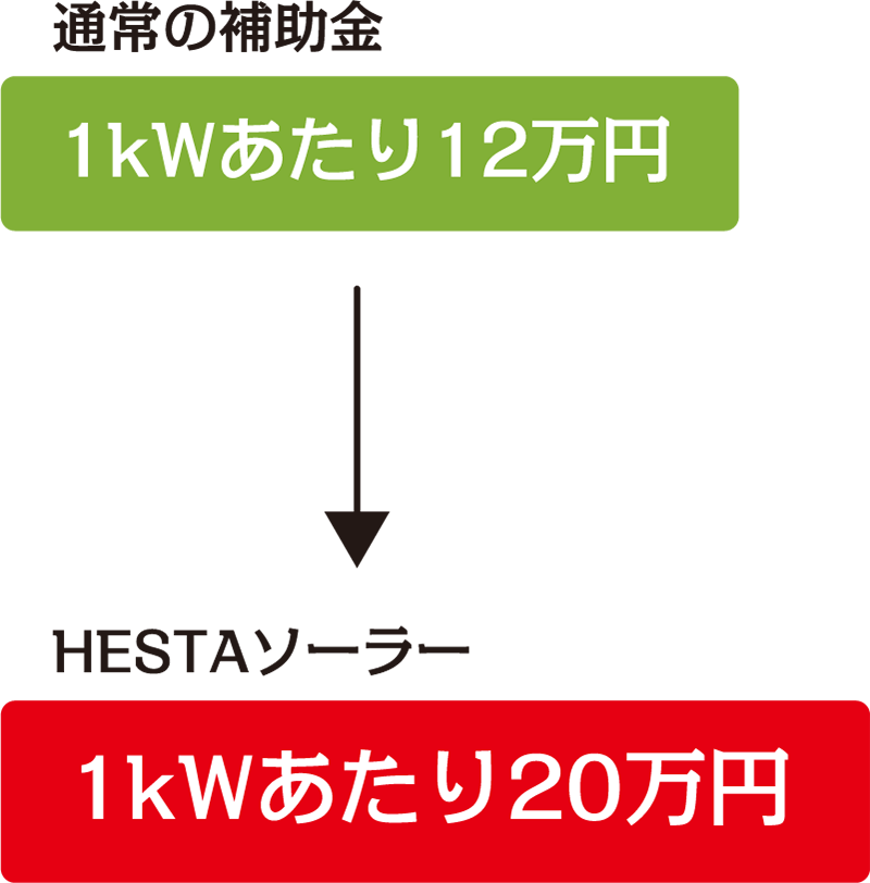 HESTAソーラーの優れた機能が認められたため、東京都から「機能性PV」に認定されました。そのため、通常1kWあたり12万円出る補助金がHESTAソーラーなら20万円出ることになります。初期費用でためらっている方も、前向きに検討できるのではないでしょうか。