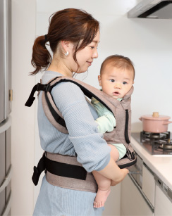 しっかりフィットして、赤ちゃんの体重をウエスト全体に分散。ママの肩や腰への負担を軽減します。赤ちゃんの股関節をサポートする国際股関節異形成協会の公式認定も取得しています。