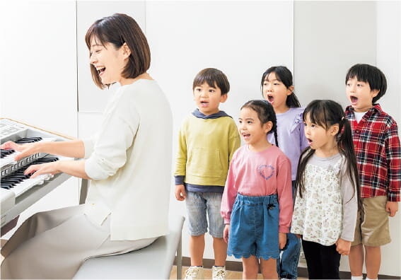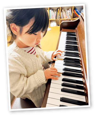 想像することが得意な3歳。耳の力が伸びる4・5歳。ピアノ・エレクトーンの演奏を通して、「きく」「うたう」「ひく」「よむ」をバランスよく学習し、無理なく音楽力を育みます。